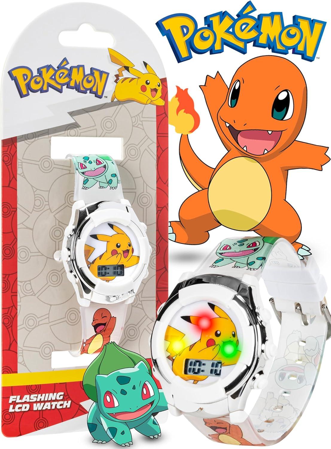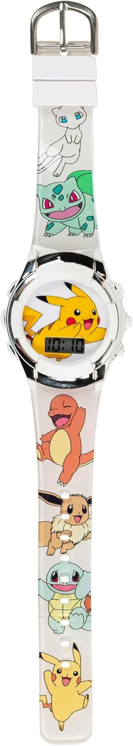 Accutime Kids Pokemon Digital LCD Quartz Watch for Boys, Girls, and Adults All Ages(Pikachu White)