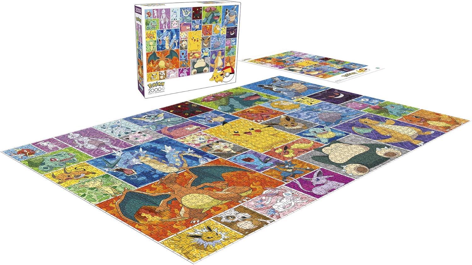 This 2000-piece jigsaw puzzle features a colorful gallery of fierce and playful Pokémon! Pikachu, Eevee, Charizard, Jigglypuff, Mewtwo, and more appear in this exciting collage, with type-inspired backgrounds for each. Test your Pokémon knowledge as you piece together this fun puzzle. Every Buffalo Games jigsaw puzzle is manufactured using premium quality 100% recycled paperboard. s signature Perfect Snap™. A bonus puzzle poster is also included so that you have a handy reference of what the completed puzzle should look like while you put yours together. ©2019 The Pokémon Company International. ©1995–2019 Nintendo / Creatures Inc. / GAME FREAK inc. TM, ®, and character names are trademarks of Nintendo.