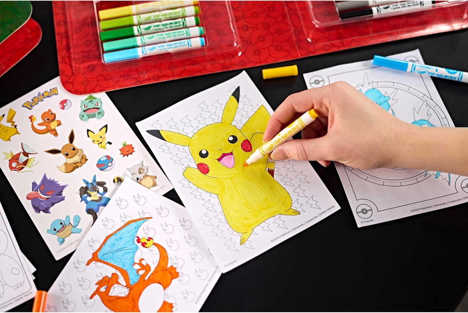 POKÉMON IMAGINATION ART SET: This Pokémon-themed art case features 115 art tools including: 56 Crayons, 15 Short Colored Pencils, 28 Washable Markers (14 SuperTips Washable Markers & 14 Pip-Squeaks Skinnies), and 15 Pokemon Coloring Pages.