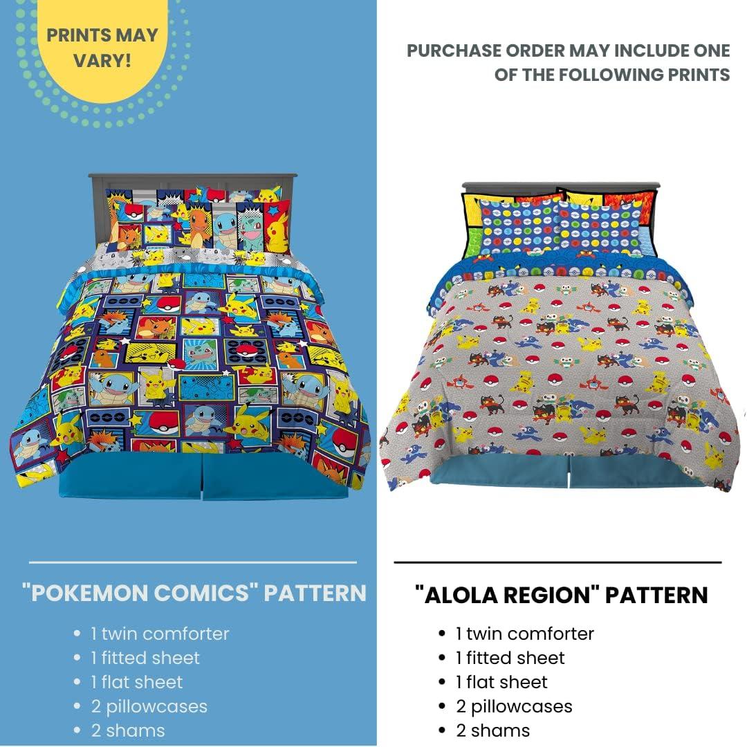 Franco Kids Bedding Super Soft Comforter and Sheet Set with Sham, 7 Piece Full Size, Pokemon(Pokemon – Aloha Region)