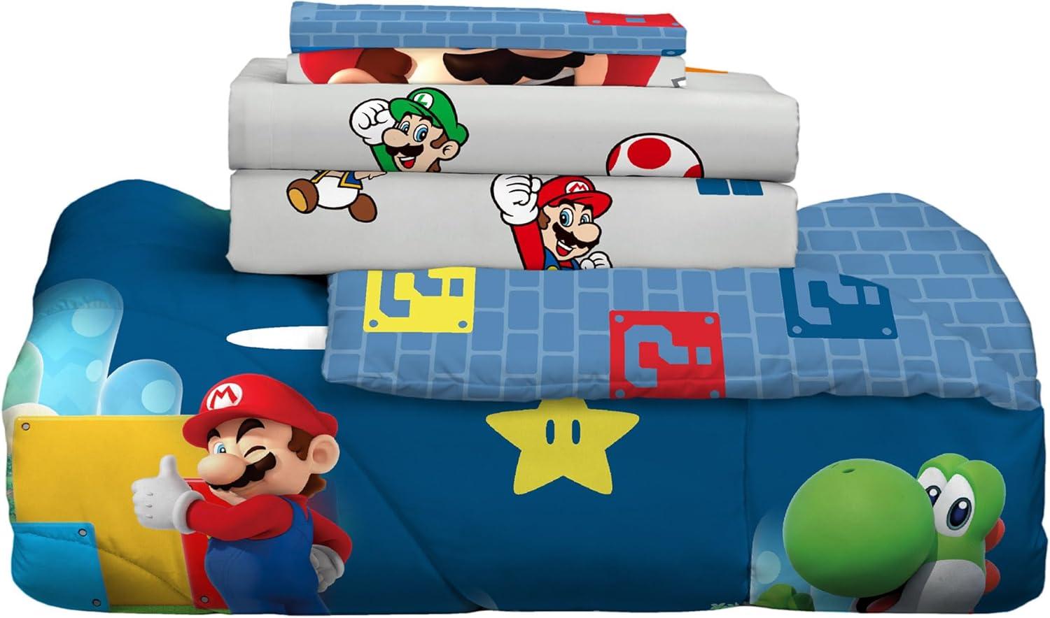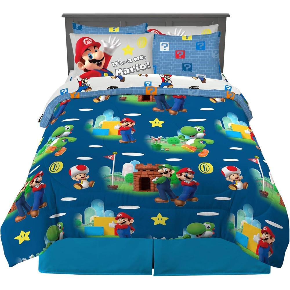 Franco Kids Bedding Super Soft Comforter and Sheet Set with Sham, 7 Piece Full Size, Pokemon(Super Mario)