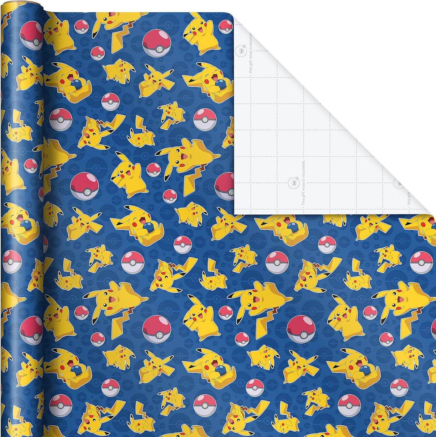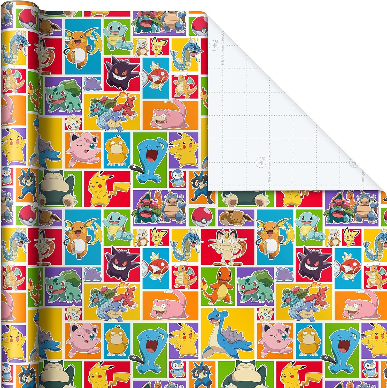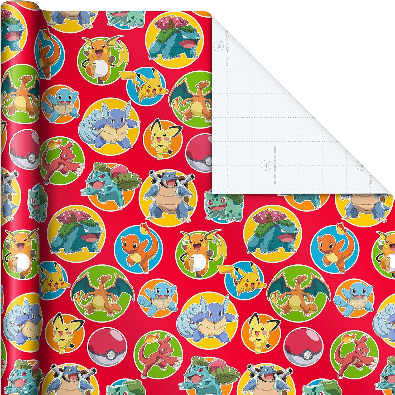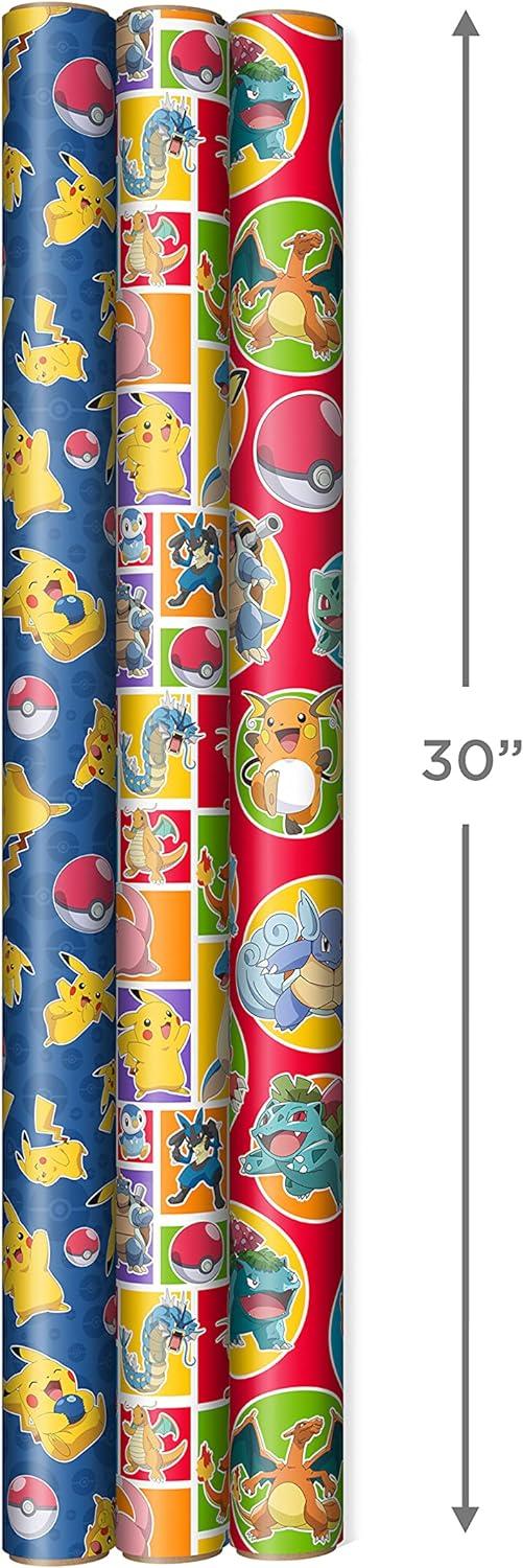 Hallmark Pokémon Wrapping Paper Rolls – Pikachu, Charmander, Bulbasaur Gift Wrap Paper (Set of 3 Rolls: 60 sq. ft. ttl.) for Birthday, Kids Parties, Gamers, Christmas Presents(8 Count (Pack of 1))