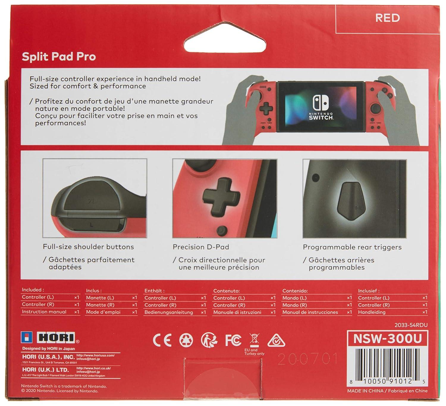 Enjoy the full-size Controller experience in handheld mode with the Hori split pad Pro! Featuring full-size analog sticks, a precision d-pad, and large shoulder buttons Designed for comfort and accuracy, even during marathon gaming sessions. Advanced features include assignable rear triggers, turbo functionally, and more. Perfect for high-pace action titles and many other genres. Enhance your gaming experience with the split pad Pro! Officially Licensed by Nintendo and Pokemon. (Not a wireless Controller – only for handheld mode. Does not include motion controls, HD rumble, NFC, or IR Camera. Note: if having trouble with the Switch recognizing split pad Pro, please ensure that all Joy-Con are off and not connected via Bluetooth.)