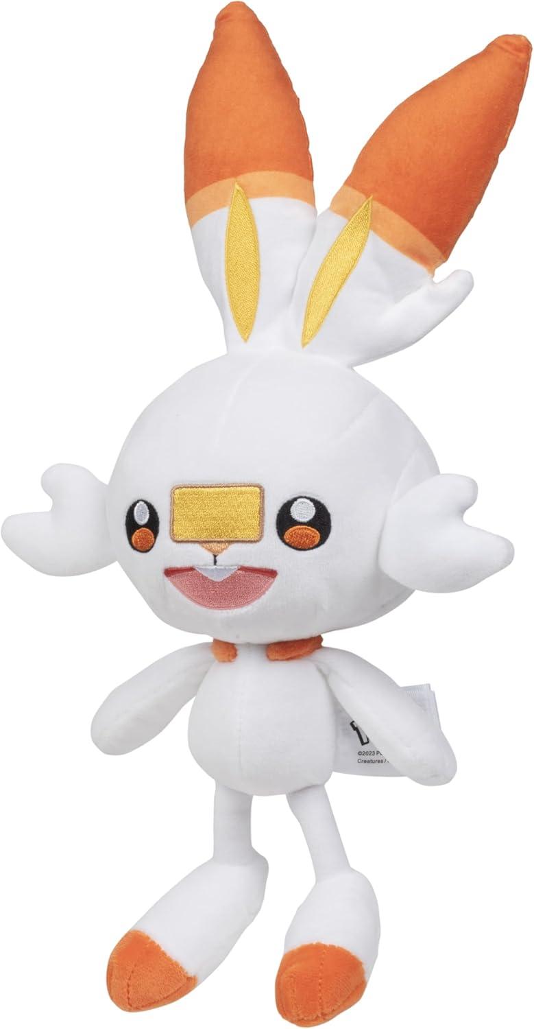 The Scorbunny plush toy figure is inspired by Pokémon anime, trading cards, Let's Go!, Detective Pikachu, Scarlet & Violet, Nintendo video games and more!