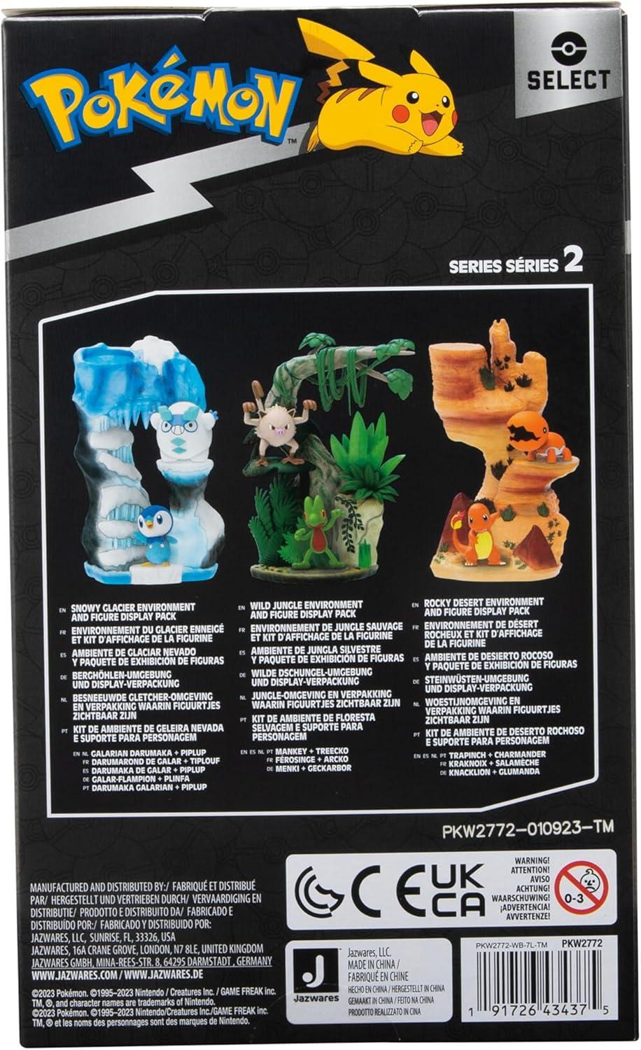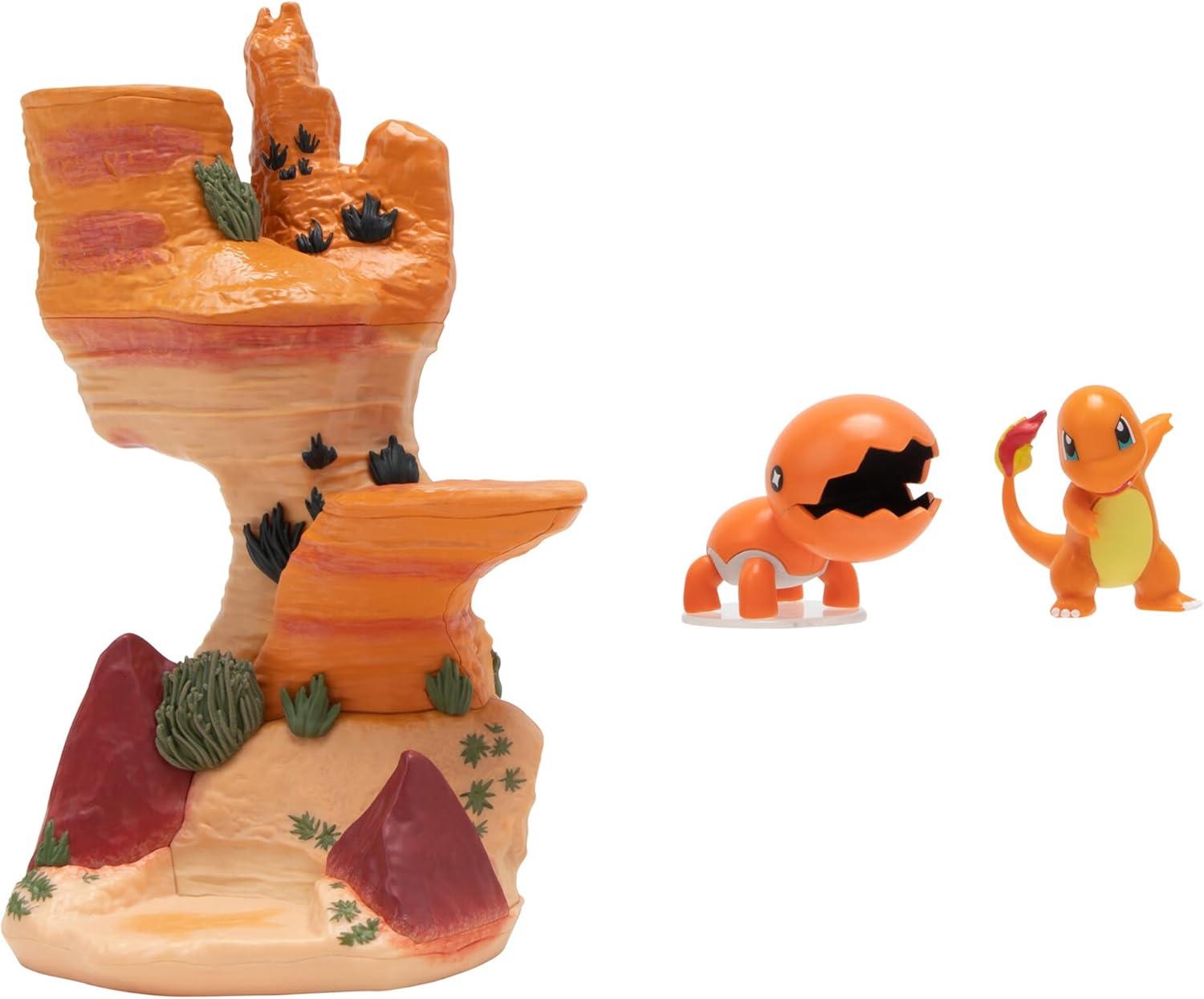 Reach great heights with the Pokémon Select Desert Rocks Environment. This highly detailed 6-inch display set features two unique levels of desert terrain. The top forms two mesas while the bottom depicts a winding sand path. It also includes two 2-inch Pokémon Battle Figures to encounter: the Ground-type Trapinch and the Fire-type Charmander. Display them alongside your other Pokémon Battle Figures and lead your team into the next region. Officially licensed Pokémon product from Jazwares. Ages 4+
