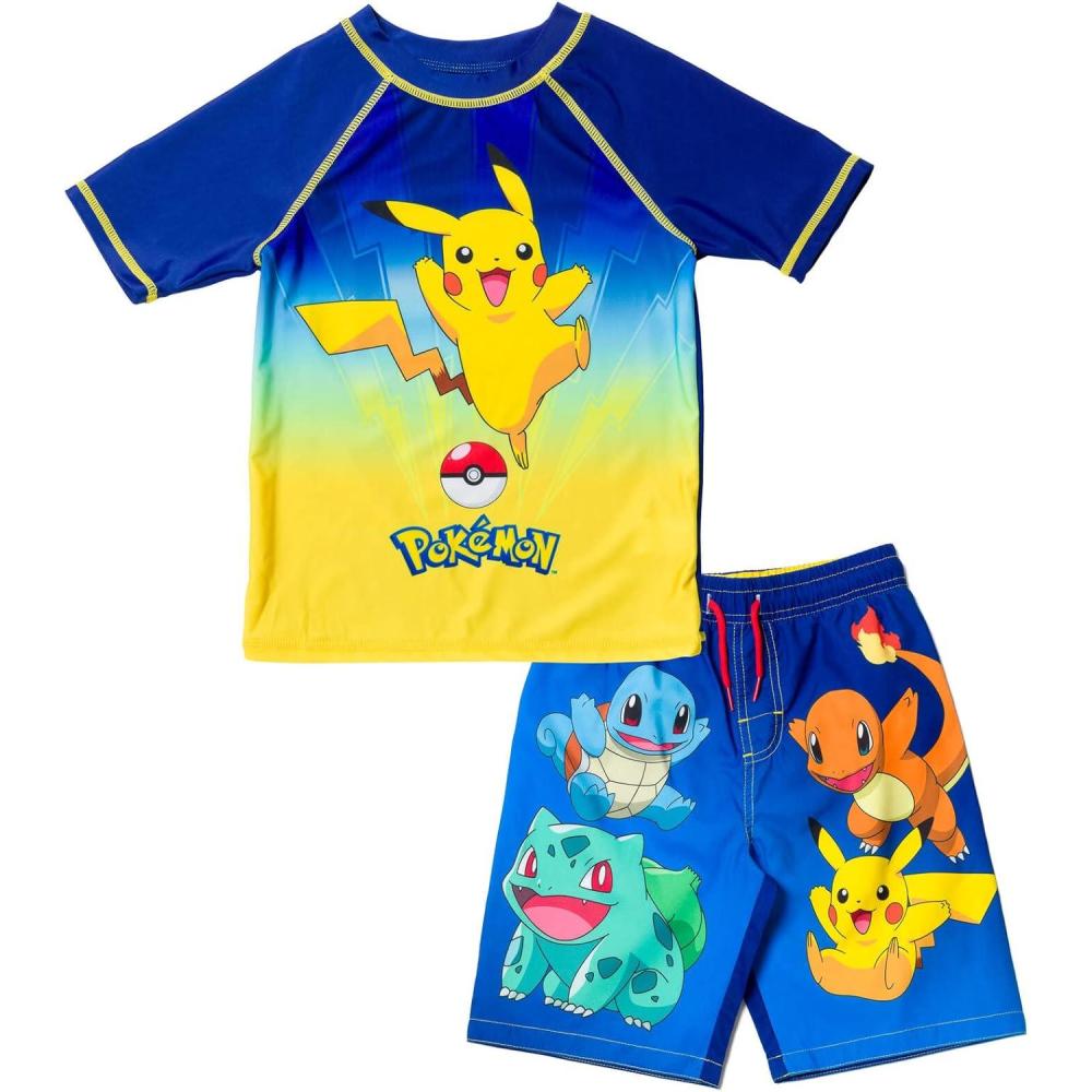 imagePokemon Raglan Rash Guard and Swim Trunks UPF 50 Outfit Set Little Kid to Adult Sizes 4  LargeMulticolor