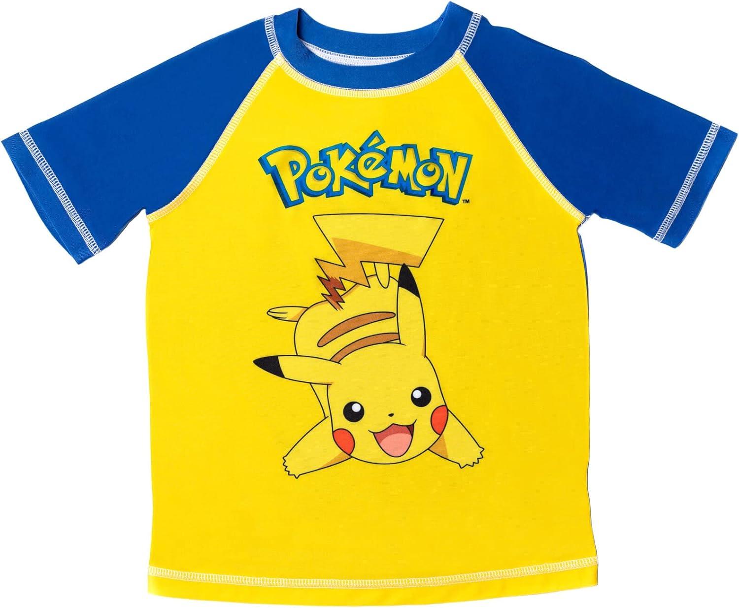 Get ready to catch some waves with this Pokémon UPF 50+ Rash Guard and Swim Trunks Outfit Set. Perfect for little kids to big kids, this set features a rash guard shirt with UPF 50+ protection to keep your child safe from the sun's harmful rays. The vibrant design showcases favorite characters like Pikachu, Charmander, Bulbasaur, and Charizard, making it a must-have for any Pokémon fan. The matching swim trunks complete the look and provide comfortable coverage for all-day play. Don't miss out on this adorable and functional swim set for your little one's next beach or pool day!