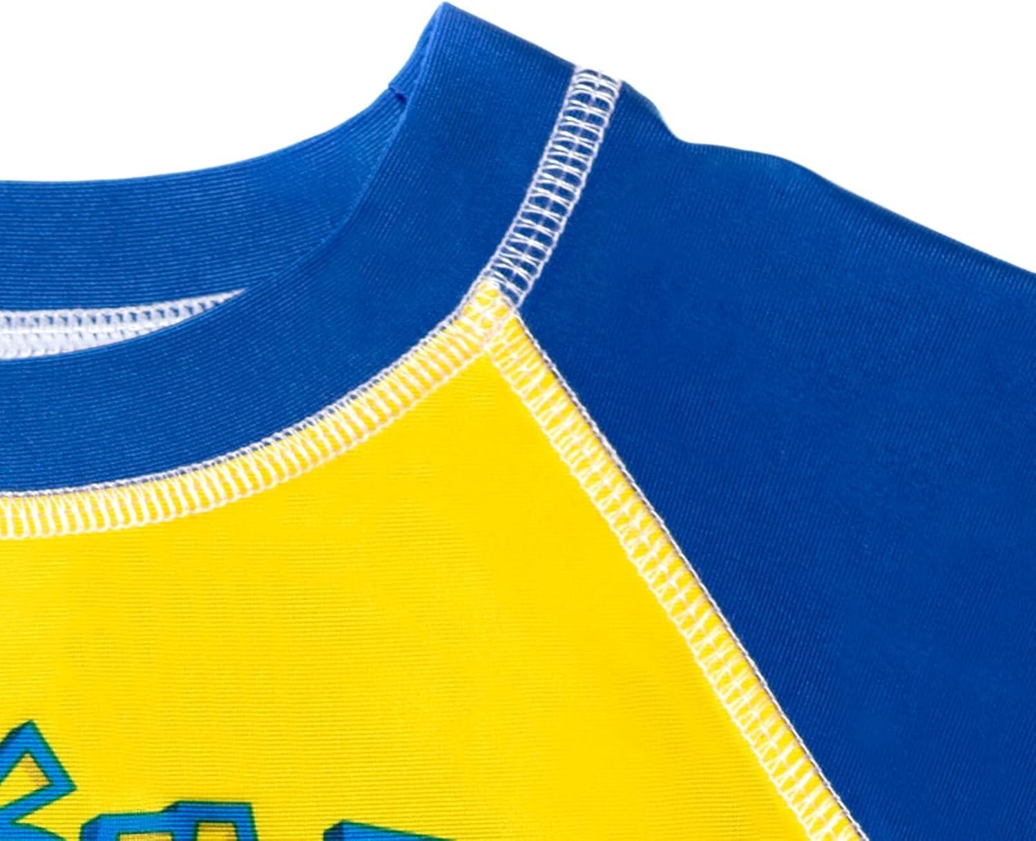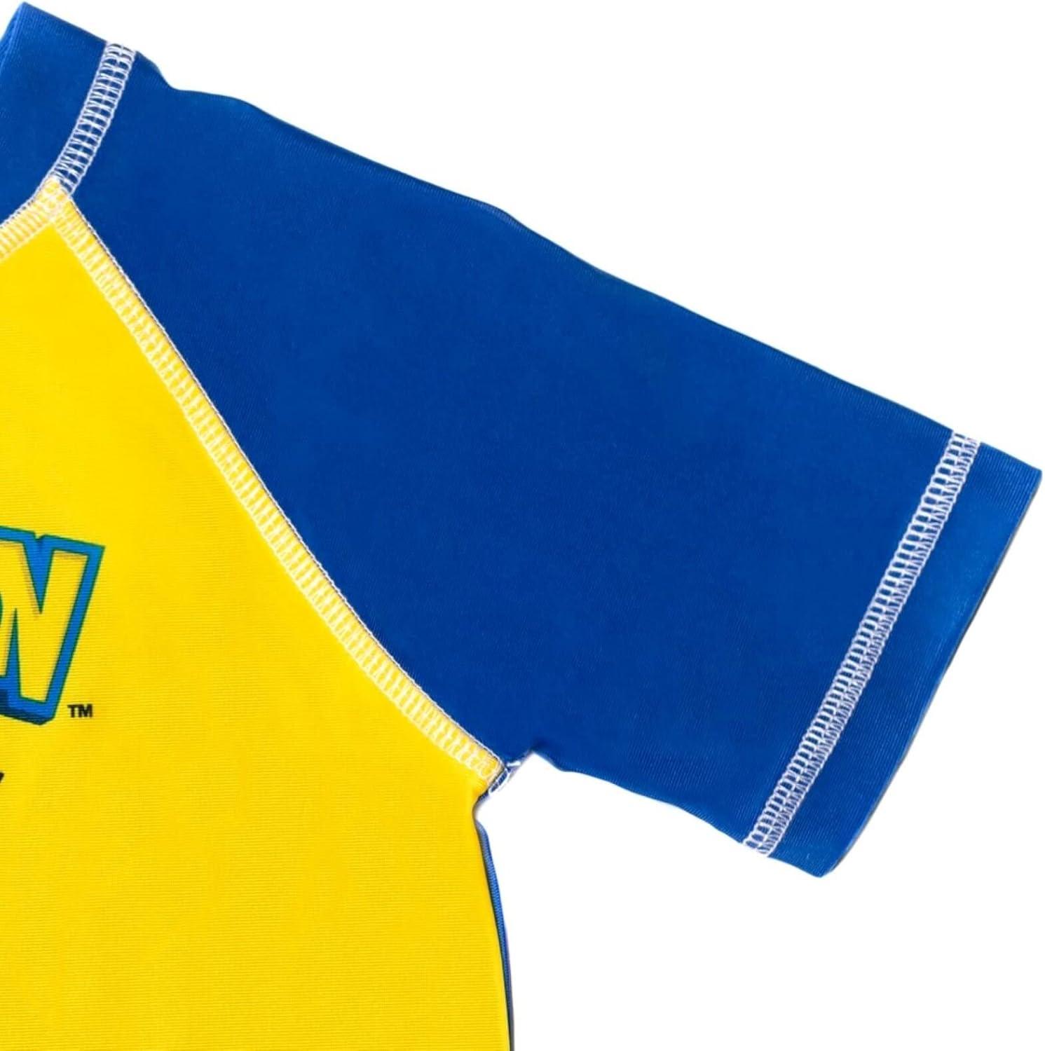 Pokemon Raglan Rash Guard and Swim Trunks UPF 50+ Outfit Set Little Kid to Adult Sizes (4 – Large)(Yellow navy)