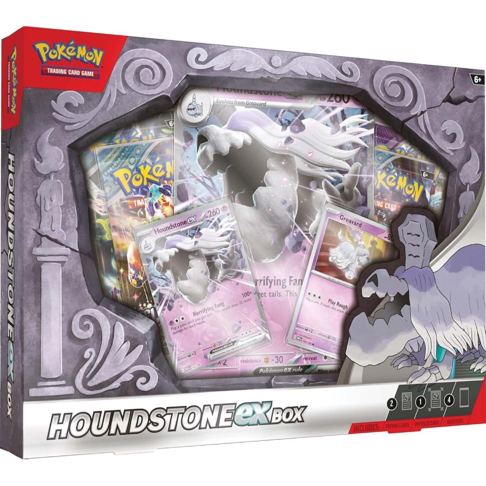 This also comes with 1 oversize foil card featuring Houndstone ex and 4 Pokémon TCG booster packs.