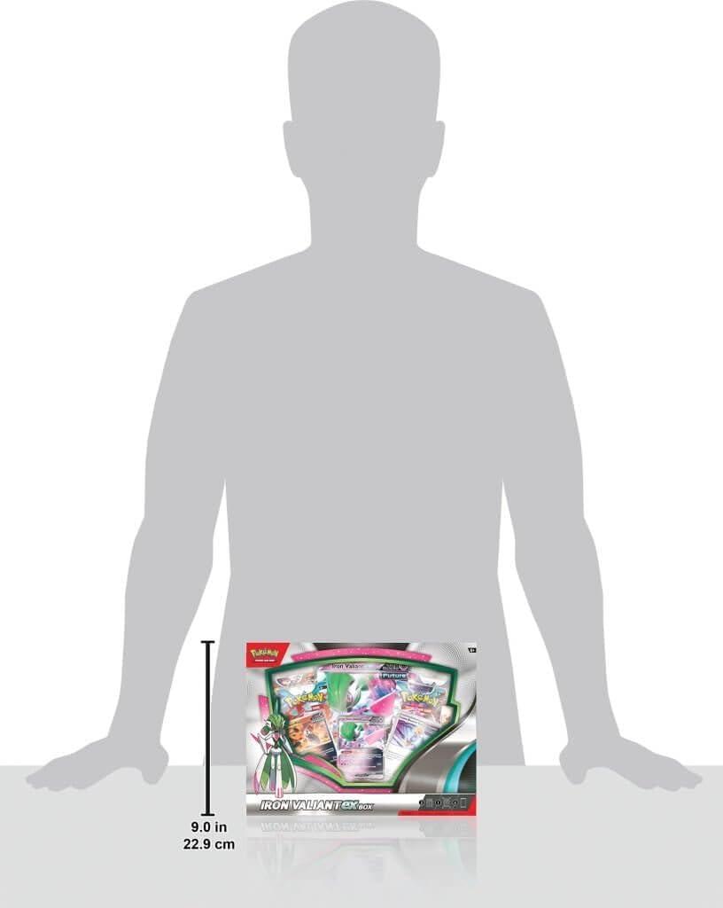 Depending upon which ex Box you receive you will get 1 foil promo card and 1 oversize foil card featuring Roaring Moon ex or Iron Valiant ex, along with 1 oversize foil card featuring Roaring Moon ex or Iron Valiant ex.