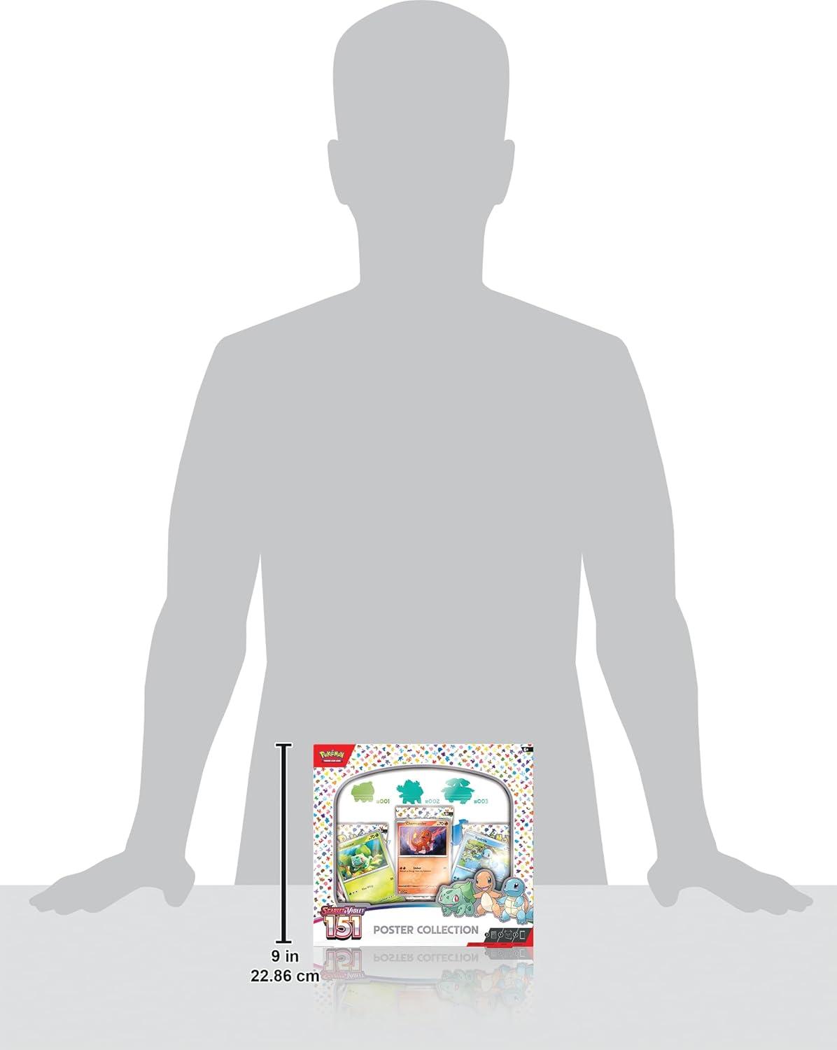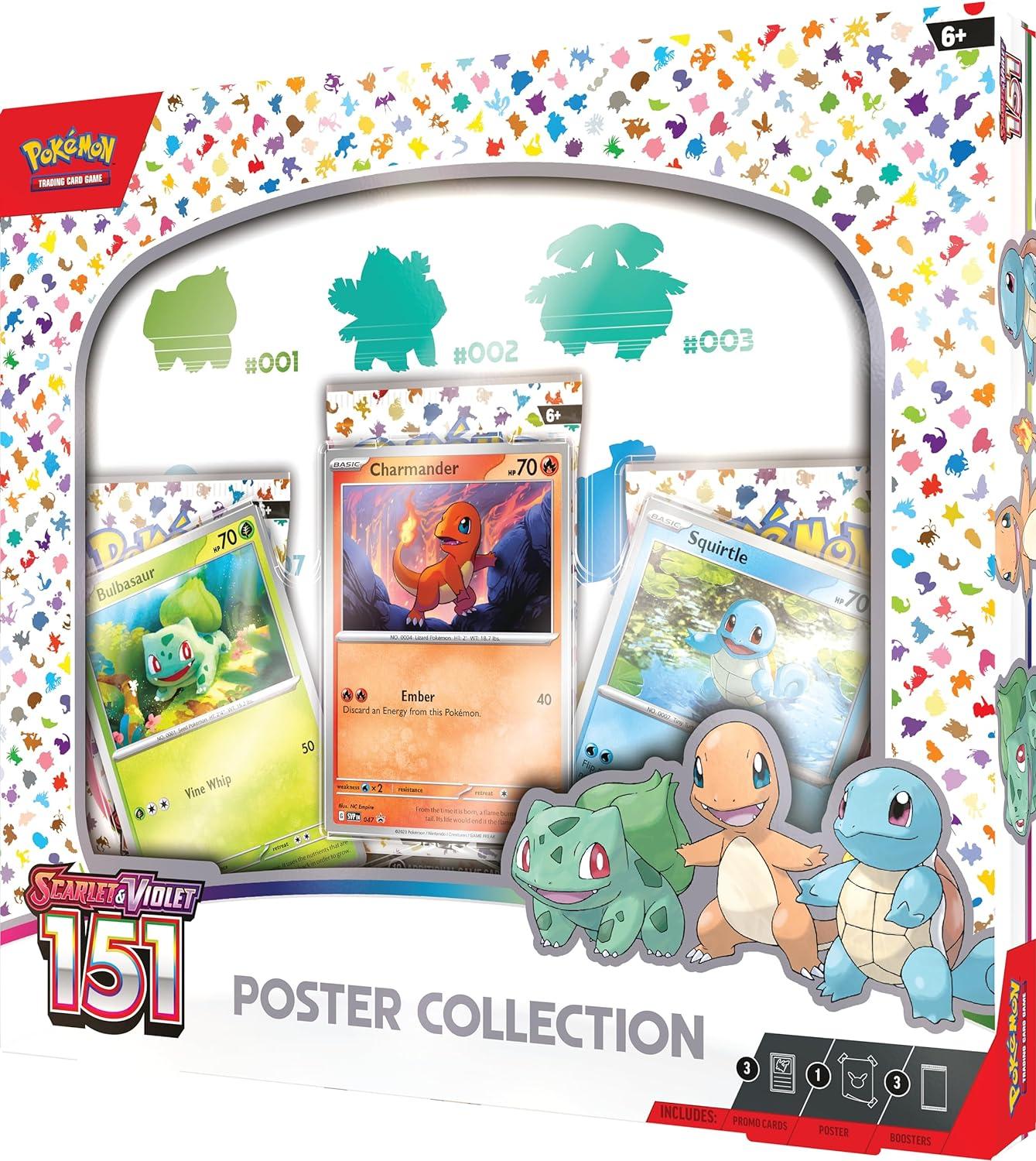 An epic journey through the Kanto region wouldn’t be complete without a first partner Pokémon! Add Bulbasaur, Charmander, and Squirtle to your team as playable foil promo cards, then work on completing your Kanto Pokédex by opening more booster packs from the special Scarlet & Violet—151 expansion. On top of it all, you’ll find a colorful poster that’s ready to hang wherever you like!