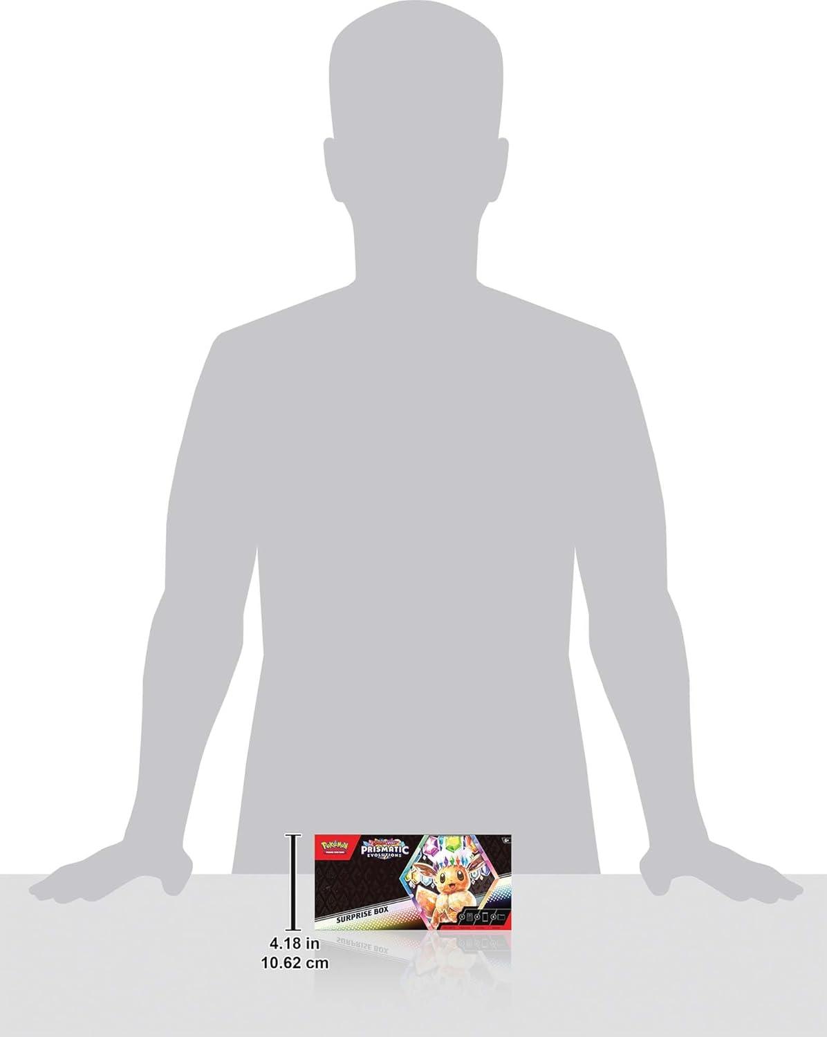 The Pokémon TCG: Scarlet & Violet—Prismatic Evolutions Surprise Box includes 1 of 9 randomly selected foil promo cards with a special logo, featuring Eevee ex, Vaporeon ex, Jolteon ex, Flareon ex, Espeon ex, Umbreon ex, Leafeon ex, Glaceon ex, or Sylveon ex.