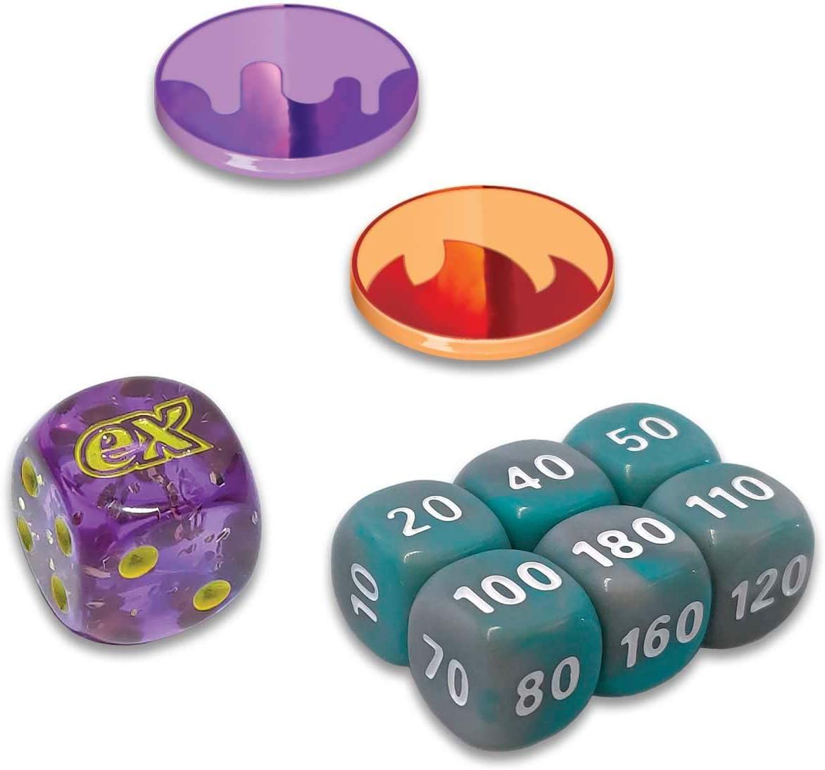 You will also receive 6 damage-counter dice, 1 competition-legal coin-flip die, and 2 plastic condition markers.