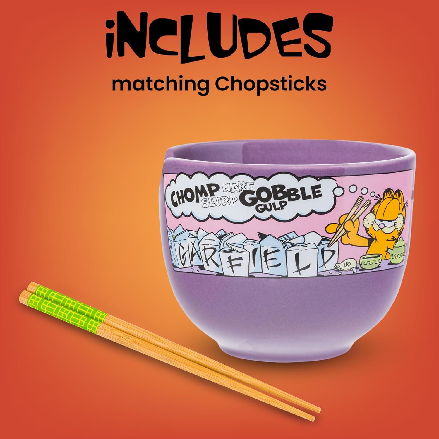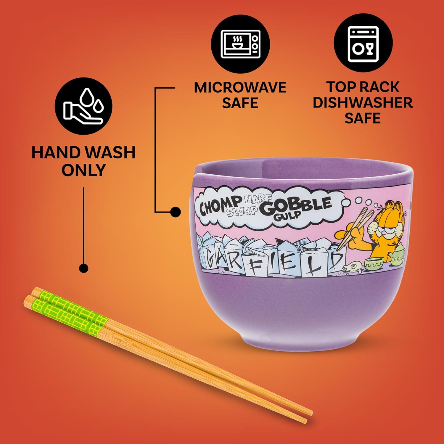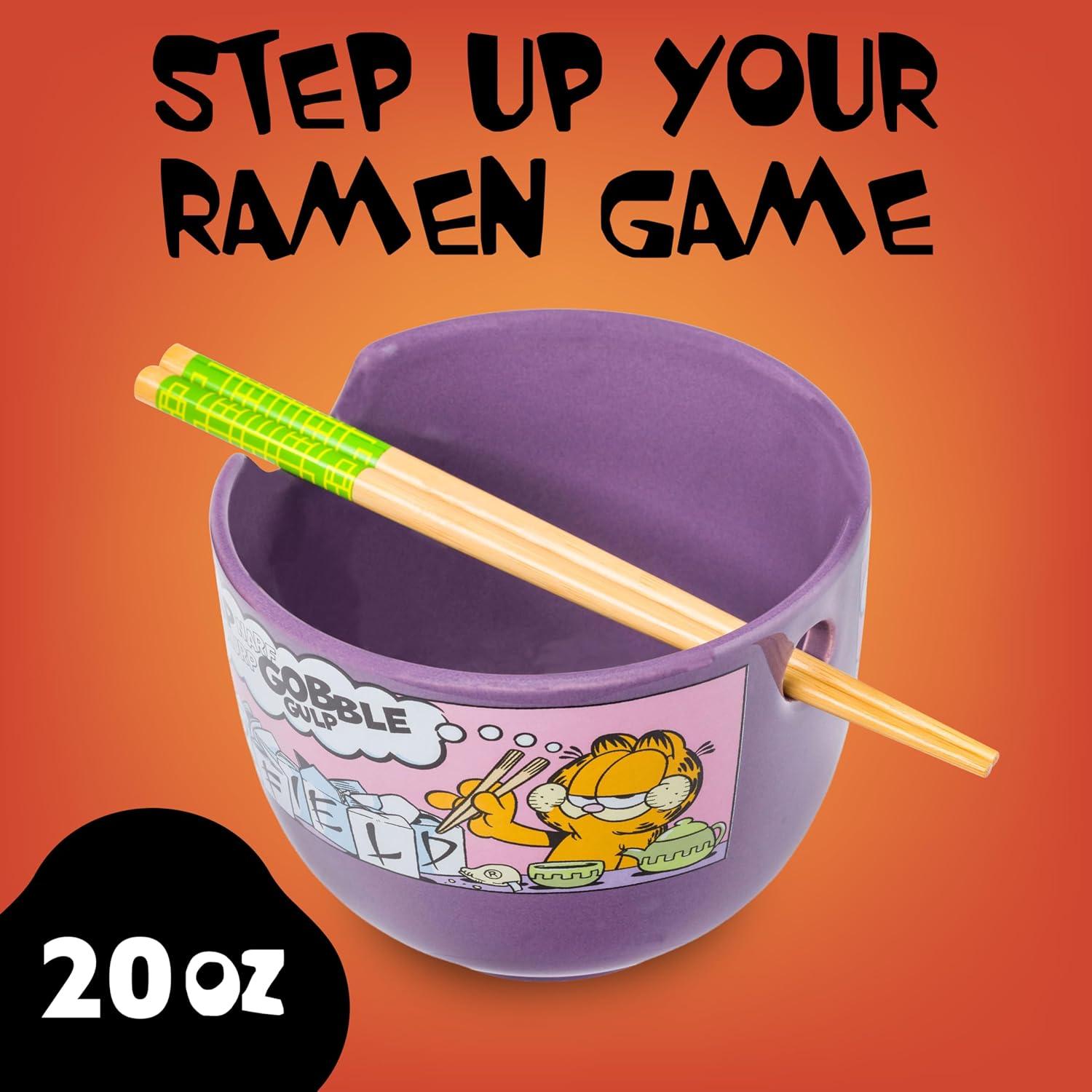 Silver Buffalo Pokemon Pikachu Ceramic Ramen Noodle Rice Bowl with Chopsticks, Microwave Safe, 20 Ounces(Garfield Eating Takeout)
