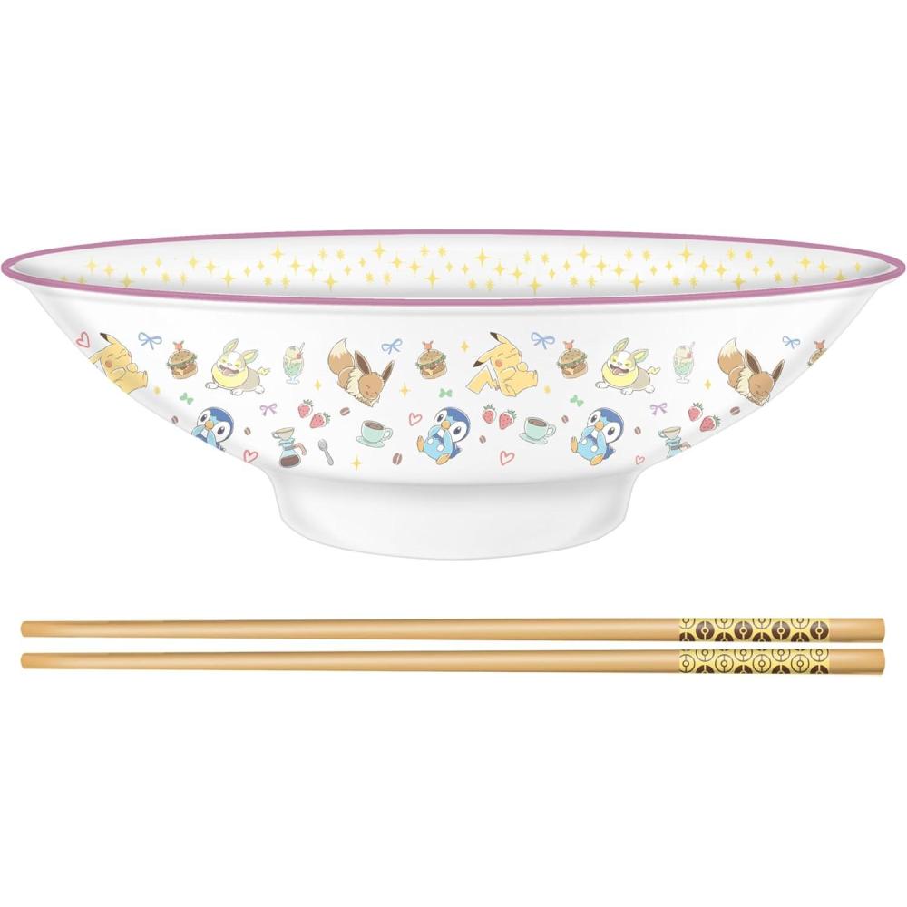 Silver Buffalo Pokemon Pikachu Ceramic Ramen Noodle Rice Bowl with Chopsticks, Microwave Safe, 20 Ounces(Pokemon Cafe Food and Character Pattern (Big))