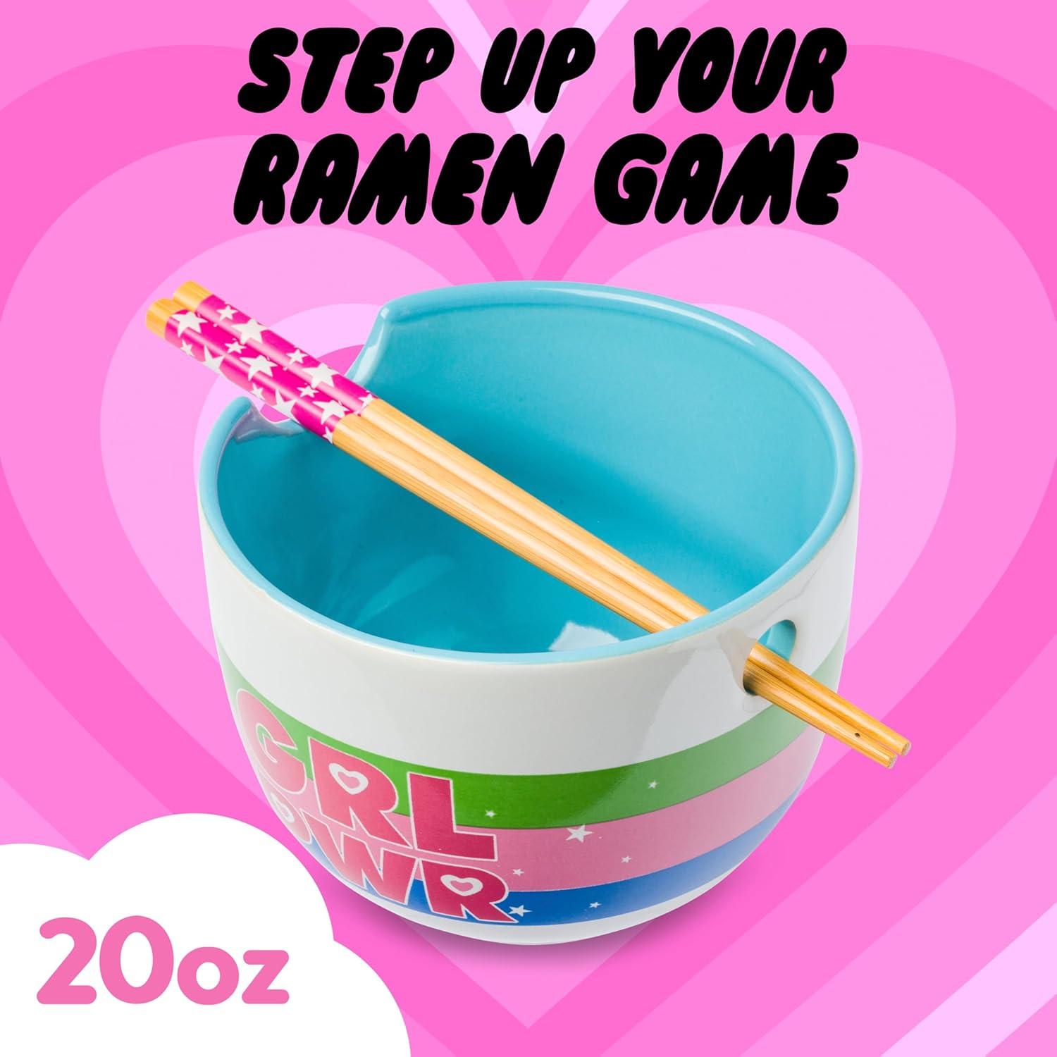 Silver Buffalo Pokemon Pikachu Ceramic Ramen Noodle Rice Bowl with Chopsticks, Microwave Safe, 20 Ounces(Powerpuff Girls Girl Power)