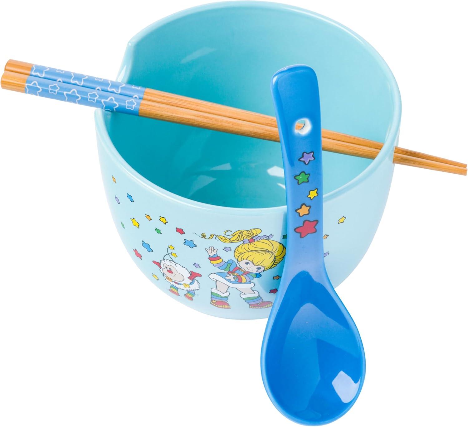Silver Buffalo Pokemon Pikachu Ceramic Ramen Noodle Rice Bowl with Chopsticks, Microwave Safe, 20 Ounces(Rainbow Brite and Twink Spoon)